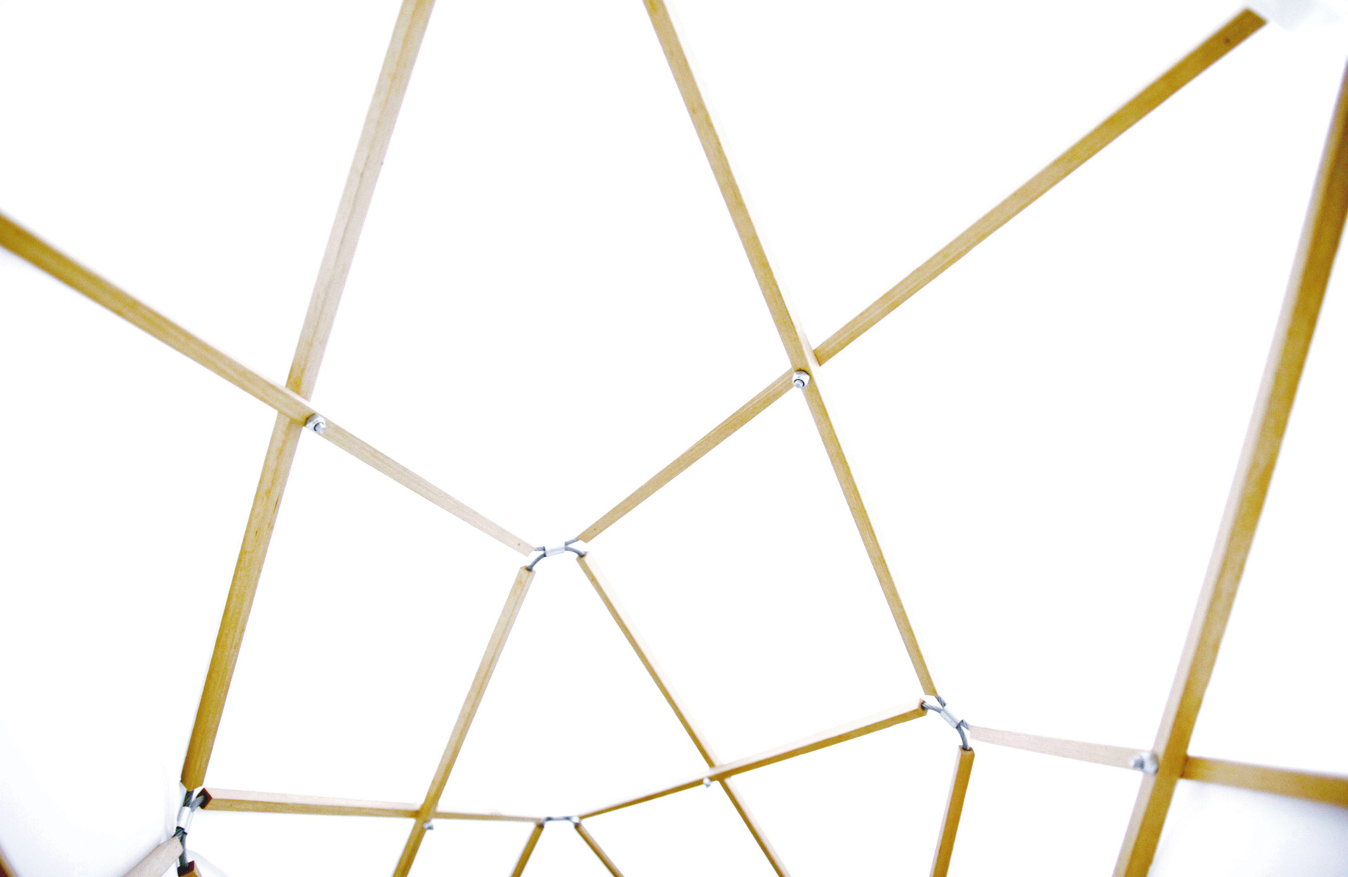 Structure en bois (Frène) avec articulations en cables d’acier.