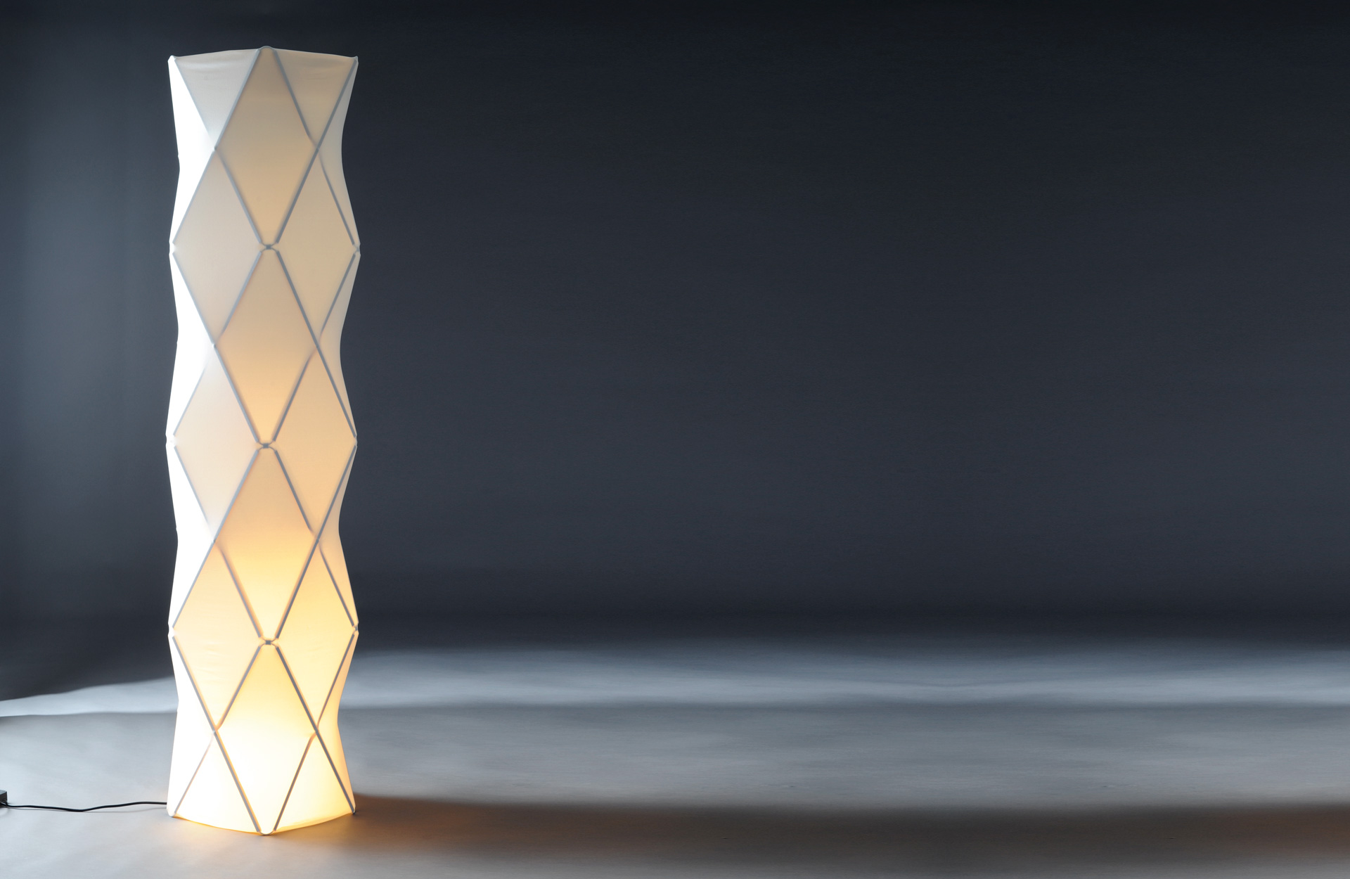 Grand luminaire d’intérieur à variateur d’intensité lumineuse. Constitué d’une housse en tissu extensible tendue sur une structure en bois de frène. Il diffuse une lumière douce et tendre, à faire varier selon l’humeur du moment, et assure une belle présence. Particularité de ce luminaire, la structure en bois est repliable sur elle même grace à la technologie Flexobon*. Livré plié dans un packaging réduit, il est déplié facilement d’une façon étonnante.