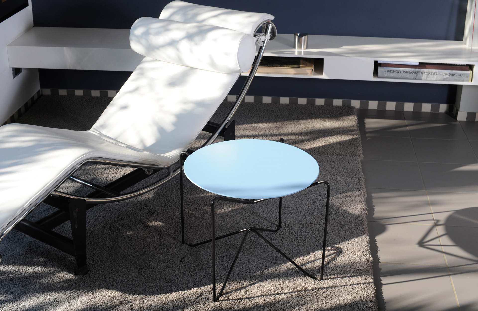 Petite table basse dont le pied évoque les ailes d’un papillon. Le fin plateau en aluminium est porté par un pied en fil d’acier aux lignes souples. Elle ne craint ni le soleil, ni la pluie, ni le froid. Elle trouvera sa place aussi bien comme table d’appoint, table de chevet, bout de canapé.